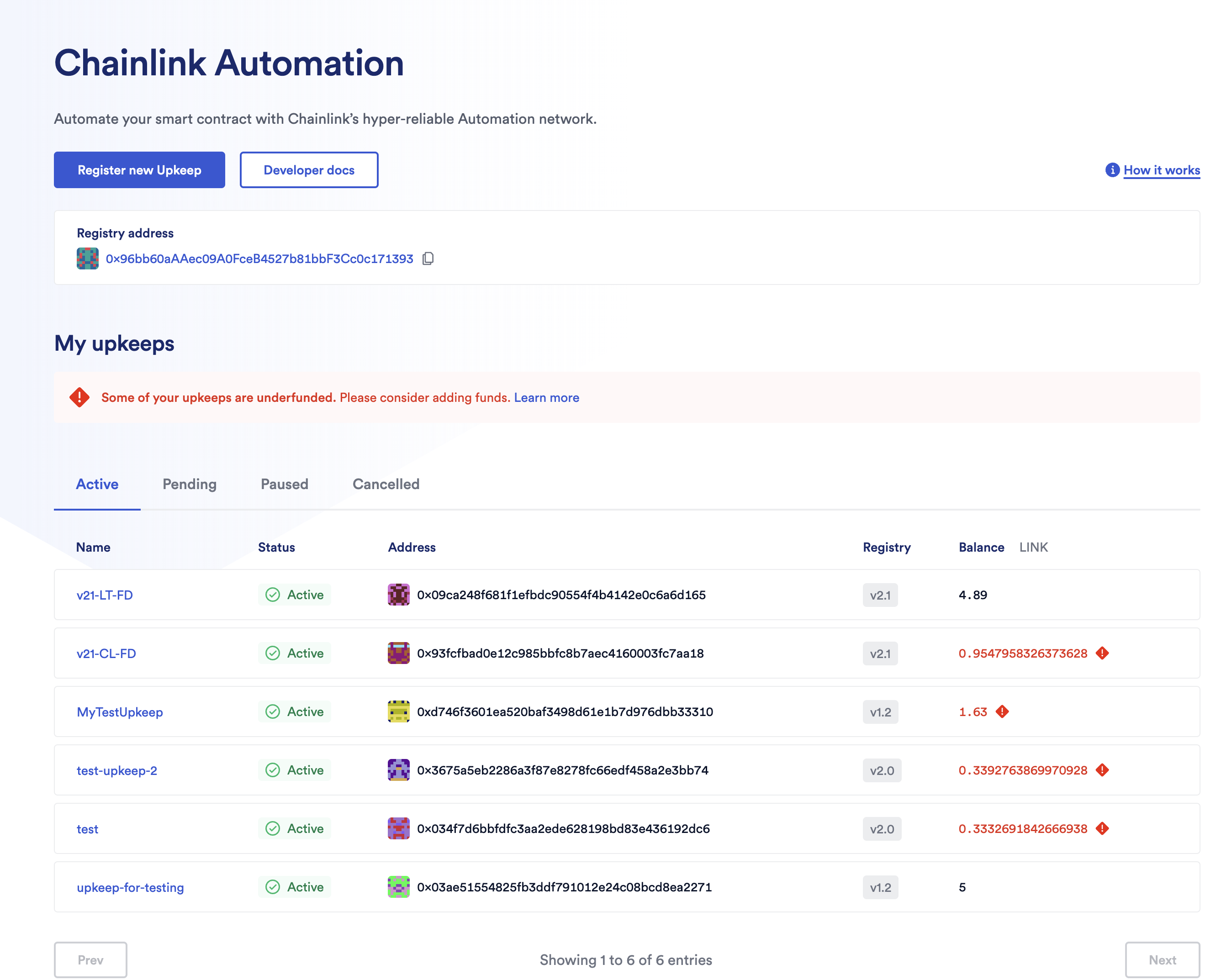 The Chainlink Automation App offers a streamlined migration process for upkeeps using registry versions 1.2 and later. To migrate upkeeps with older versions, follow the manual migration process instead.