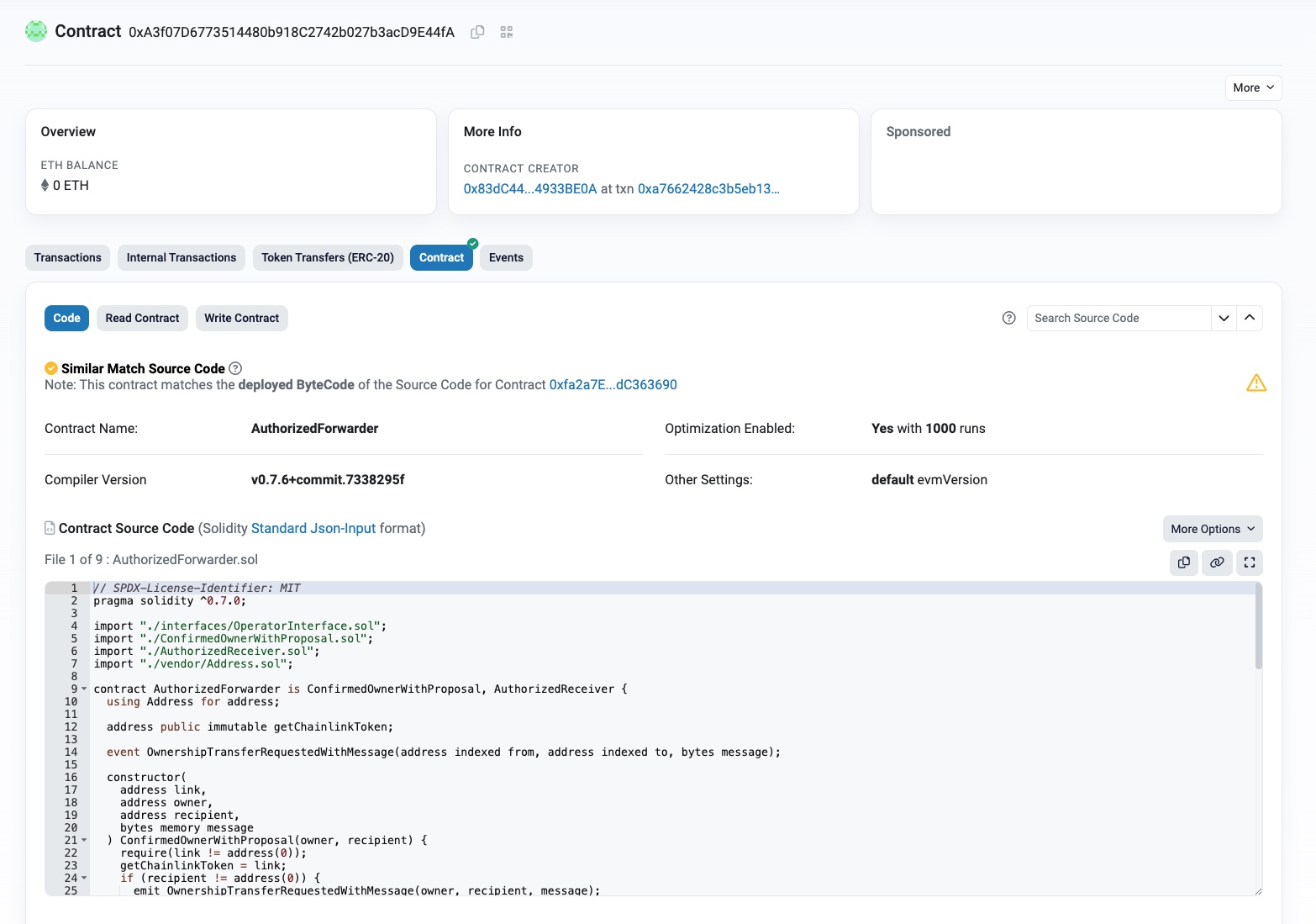 • Forwarder contracts distinguish between owners and authorized senders. Authorized senders are hot wallets (Chainlink nodes' EOAs).